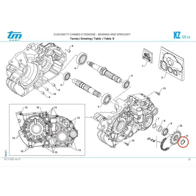 Seeger for 20mm diameter pinion lock suitable for all crankshafts of all KZ engines of the TM KART brand, mounts on: