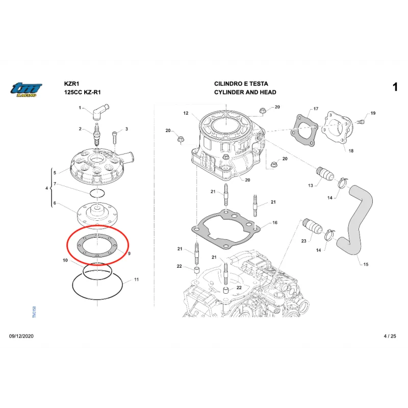Cylinder head gasket available in different thicknesses, suitable for KZ10-C and KZ-R1 engines of the TM KART brand.