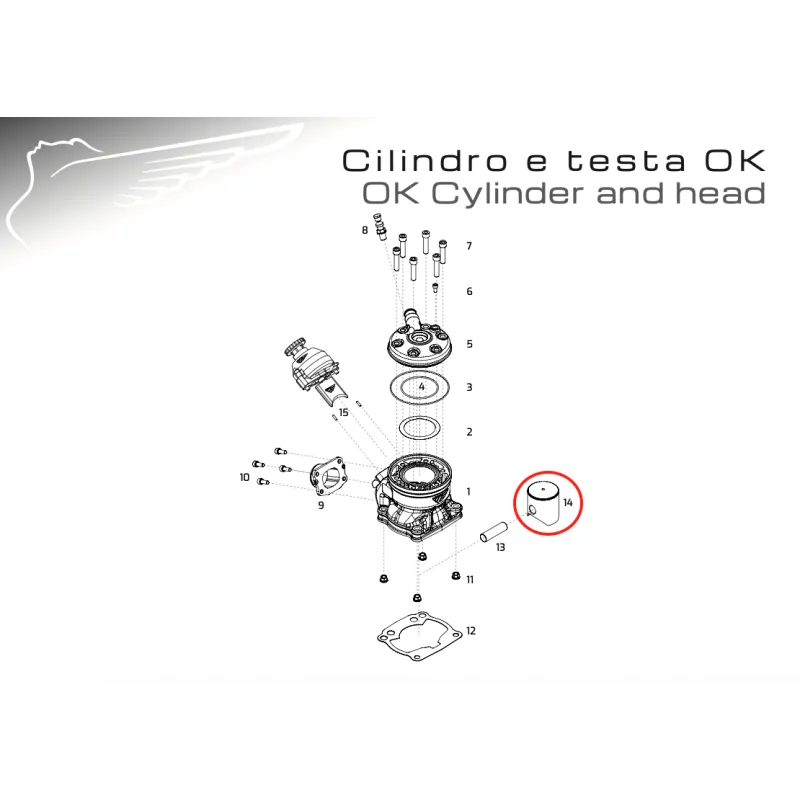 Complete piston suitable for OK, OKN and OKJ engines of the brand MODENA ENGINES.
