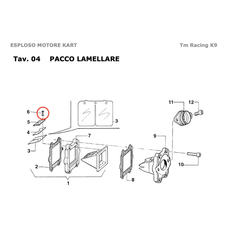 TBCE 3x6mm ZB CR3 UNI 7687 DIN 7985 screw, suitable for the reed pack of the following TM KART engines: