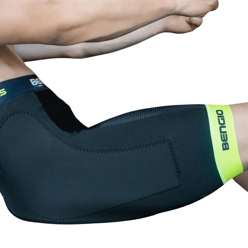 Latest generation of smooth and elastic materials. Inserts made of perforated licra allows a better transpirability. The inside lining is made of a special closed-cell foam designed to protect iliac crest, low back area and femoral area.