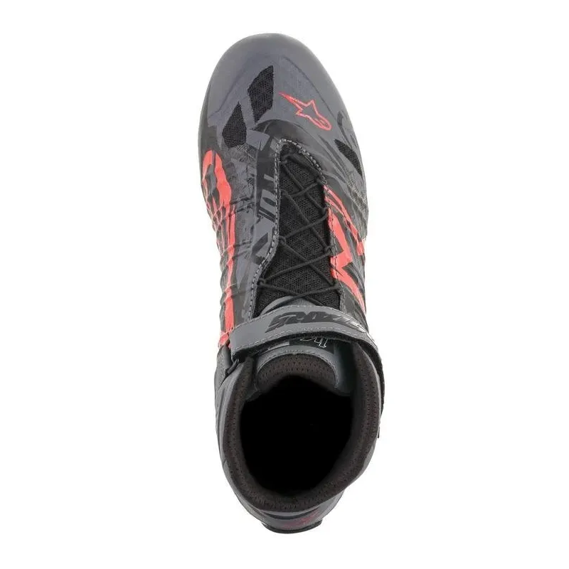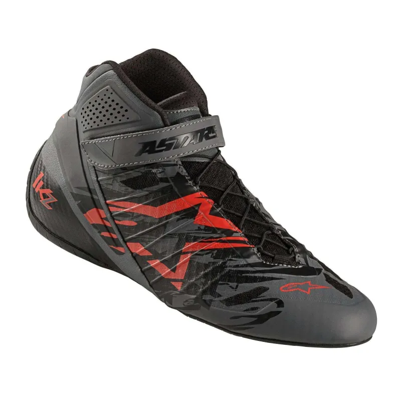Incorporating Formula 1 proven technical features and karting specific innovations, the new Tech-1 KZ shoe has undergone a major evolution to continue to deliver exceptional performance in karting. Alpinestars' new asymmetrical instep lacing and exclusive wire closure system provide lightweight, precise support and an anatomical forefoot profile, while new external reinforcements on the rounded heel and ankles provide high levels of protection and performance. Minimal seams, a new F1-specific ultra-thin grip sole and new strategically placed laser-cut perforation zones make the Tech-1 KZ shoe one of the most advanced shoes in karting.