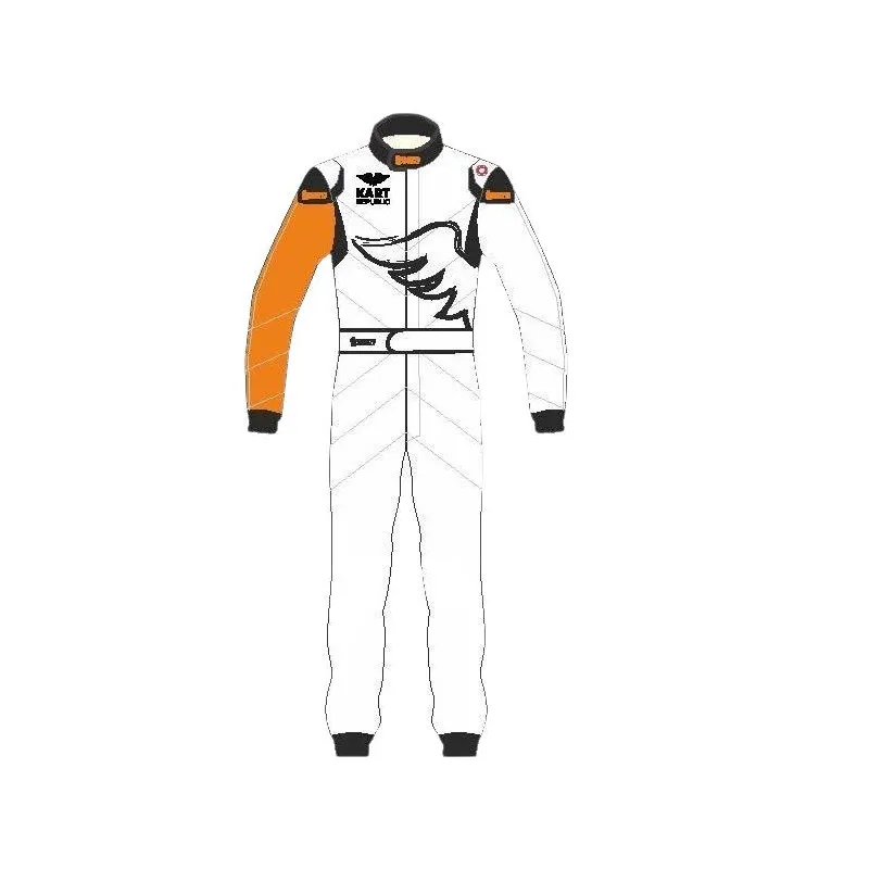 Suit of the KART REPUBLIC brand in collaboration with Freem, lightweight, comfortable and breathable at 360°, CIK-FIA approved.