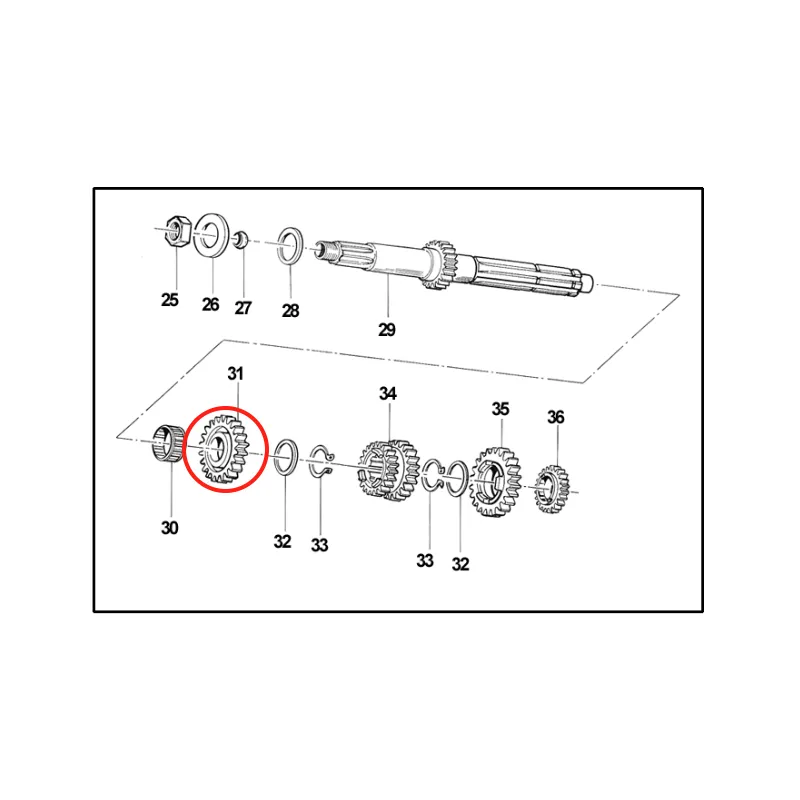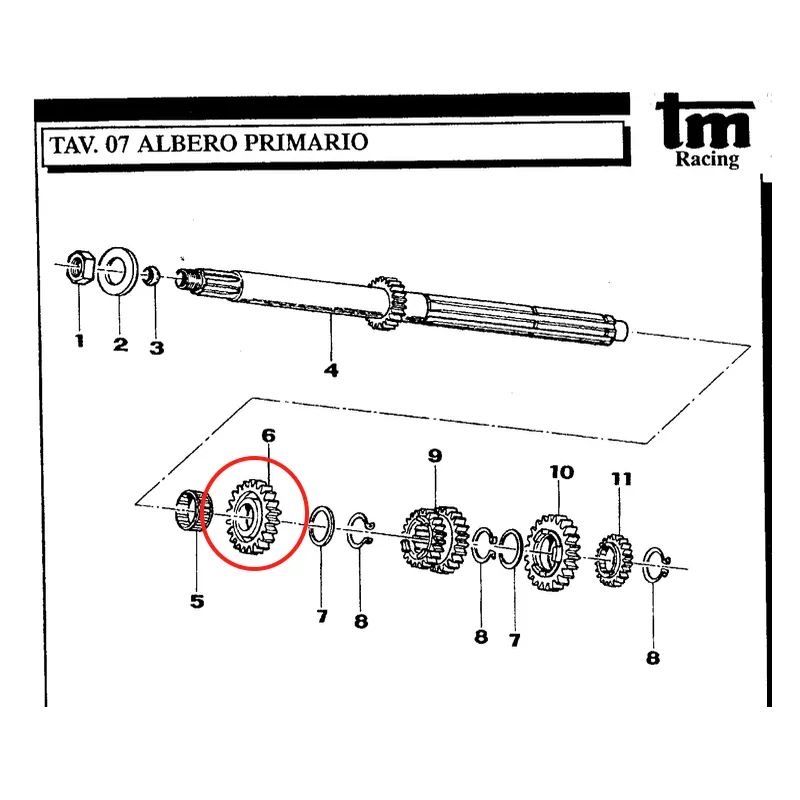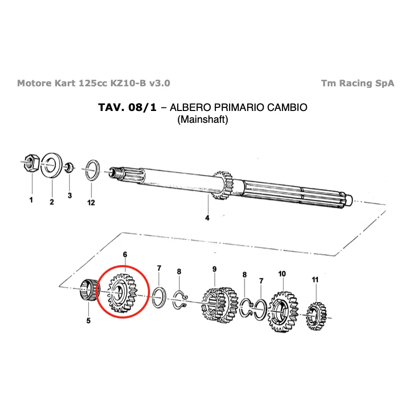 Engranaje eje primario para quinta marcha Z22 para motores KZ de la marca TM KART.