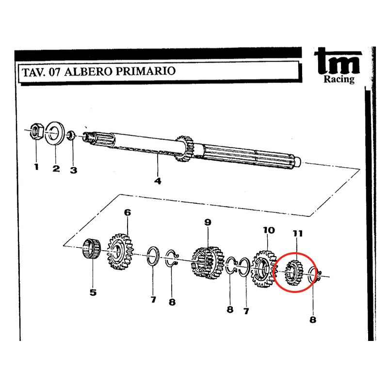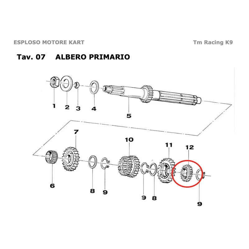 Engranaje eje primario para segunda marcha de dentado 16 verde para motores KZ de la marca TM KART: