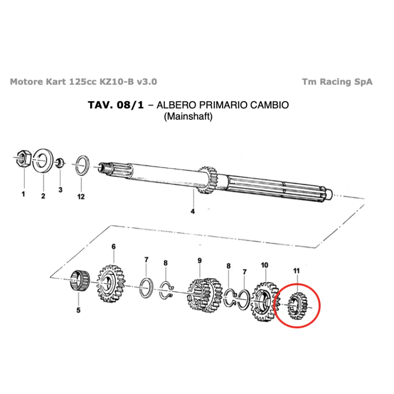 Engranaje eje primario para segunda marcha Z16 verde para motores KZ de la marca TM KART.