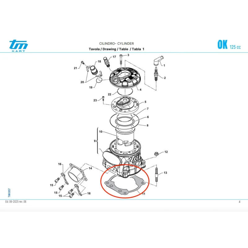 Junta de base del cilindro adecuada para los motores OK S3, OKJ S3 y OKN S3 de la marca TM KART.