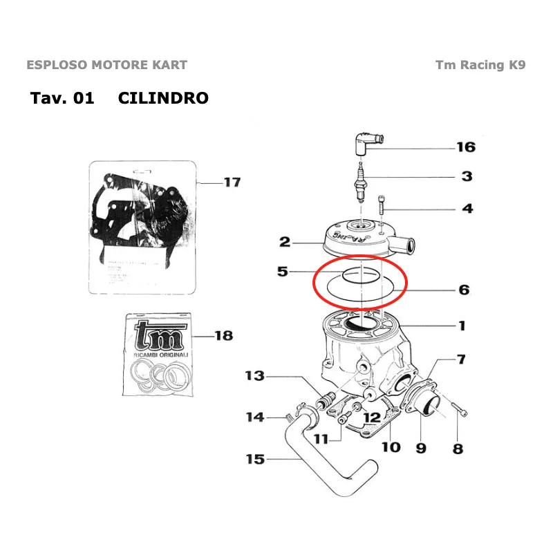 O-ring grande para cabeza de cilindro adecuado para los motores TM KART modelos: