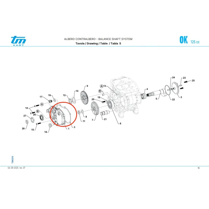 Junta de cubierta de transmisión adecuada para los motores OK S3, OKJ S3 y OKN S3 de la marca TM KART.