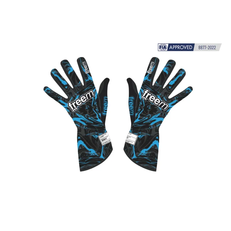 Guantes de piloto de la marca FREEM, modelo K-SLIGHT 24 STAIN con homologación FIA STANDARD 8877-2022.