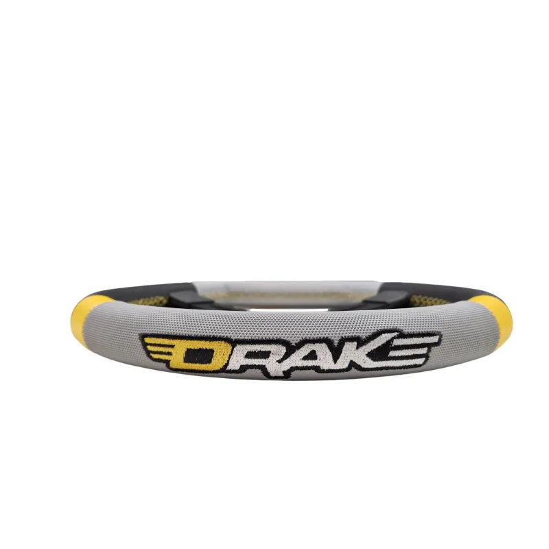 Volante de marca DRAKE con un diámetro de 330mm, fabricado sobre la base del volante Kart Republic Group año 2023, adecuado para todas las categorías de karts.