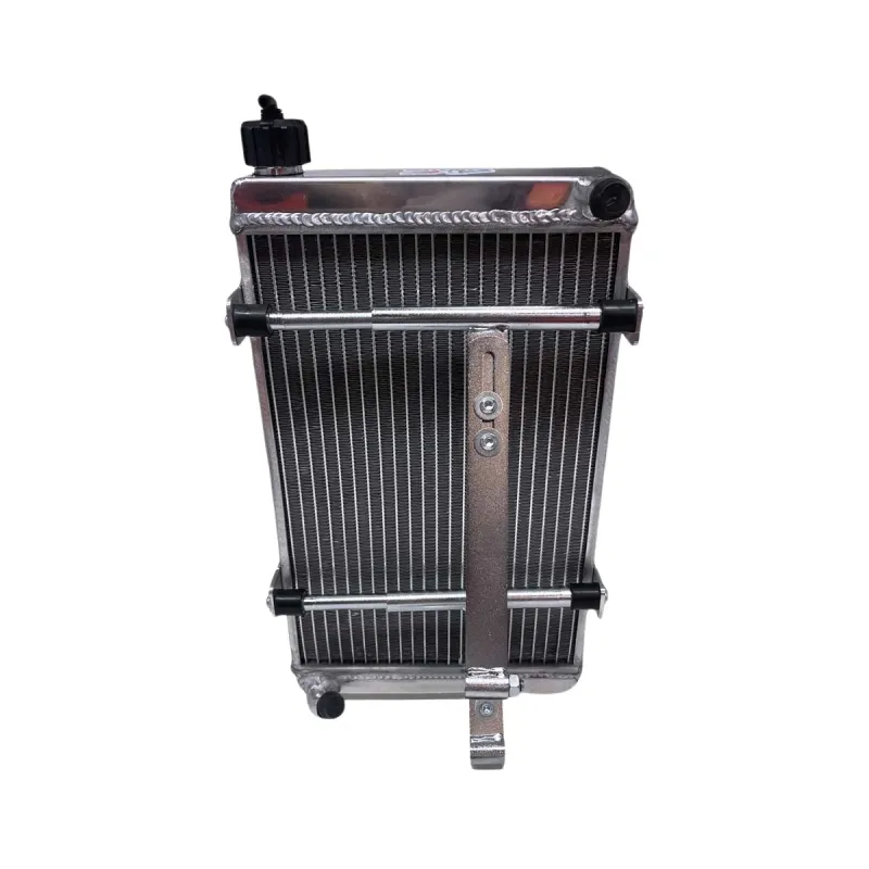 El radiador de kart universal AF1 de AF Radiator viene con tapón de plástico y soportes estándar ajustables.