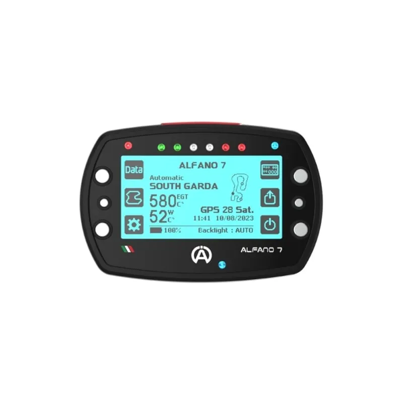 Telemetría de la marca ALFANO, 7 1T, adecuada para mediciones de velocidad, RPM, tiempos en vuelta e intervalos gracias a sus 4 sistemas GPS.