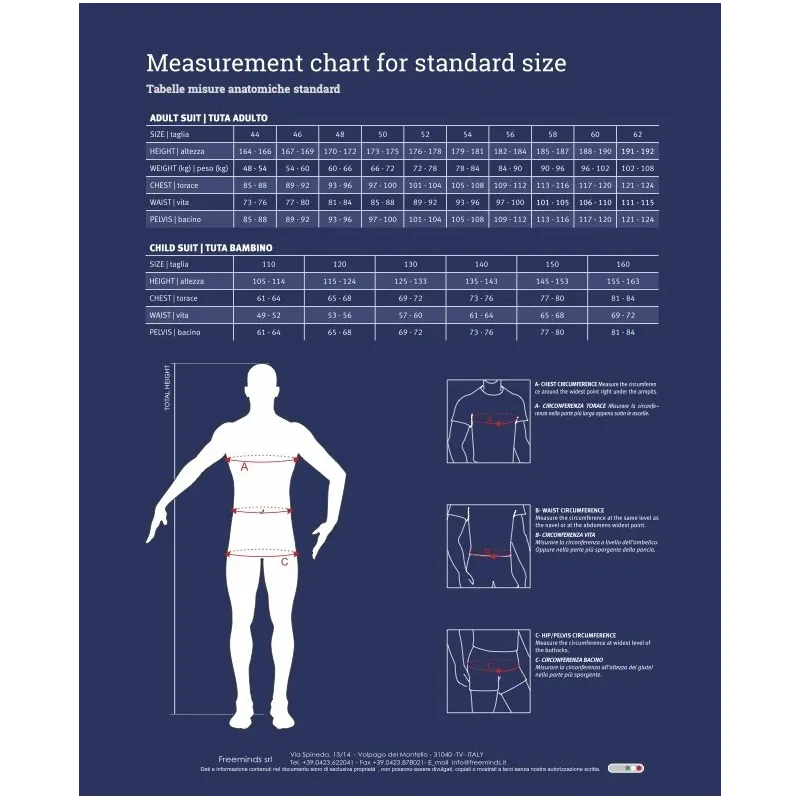 • CONFORT: un tratamiento especial permite que el material exterior sea ligero, transpirable y suave; estas características le dan al traje un ajuste tal que sigue la ergonomía y los movimientos del cuerpo, convirtiéndolo en casi una "segunda piel"