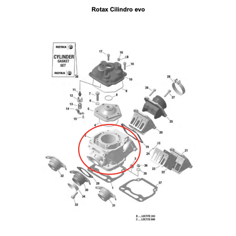 Cilindro da competizione ad alte prestazioni prodotto da Rotax, azienda leader nel settore karting.