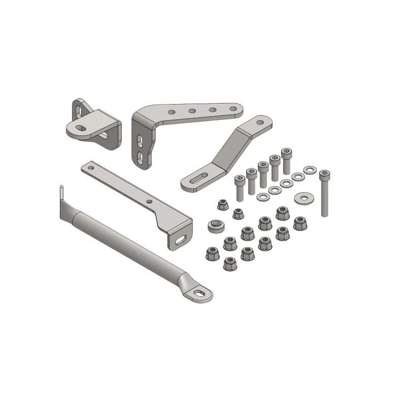 Il kit supporti per radiatore, marmitta e filtro aria per il kart DD2 è un pacchetto completo progettato per montare e supportare in modo sicuro questi componenti essenziali sul telaio del veicolo.